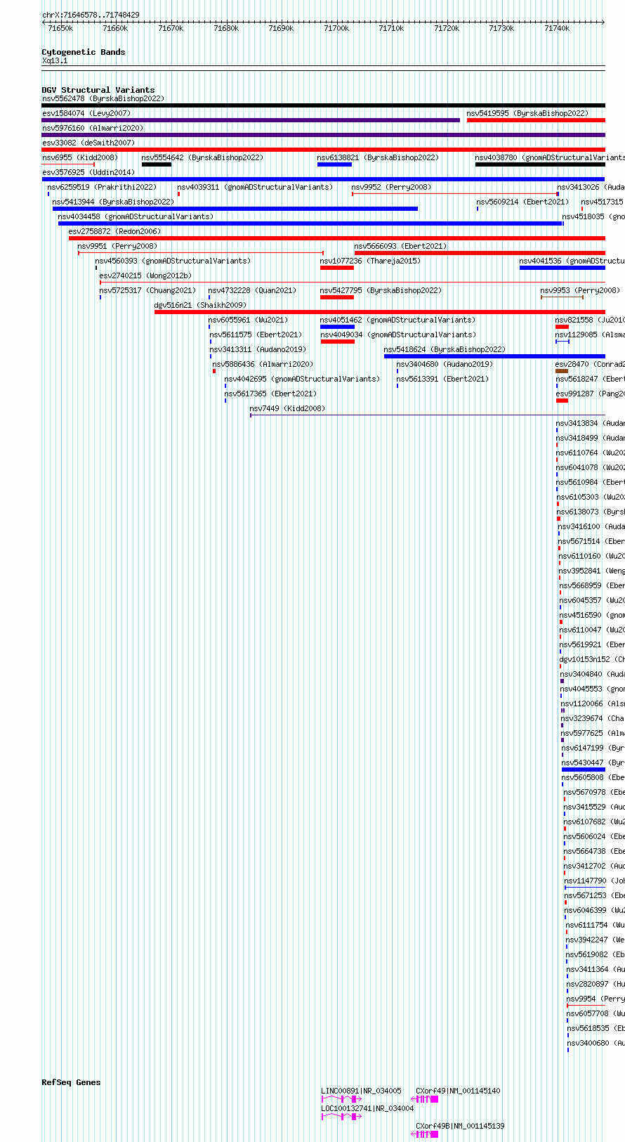 | Known Genes | BCYRN1, CXorf49, CXorf49B, LINC00891, LOC100132741 |