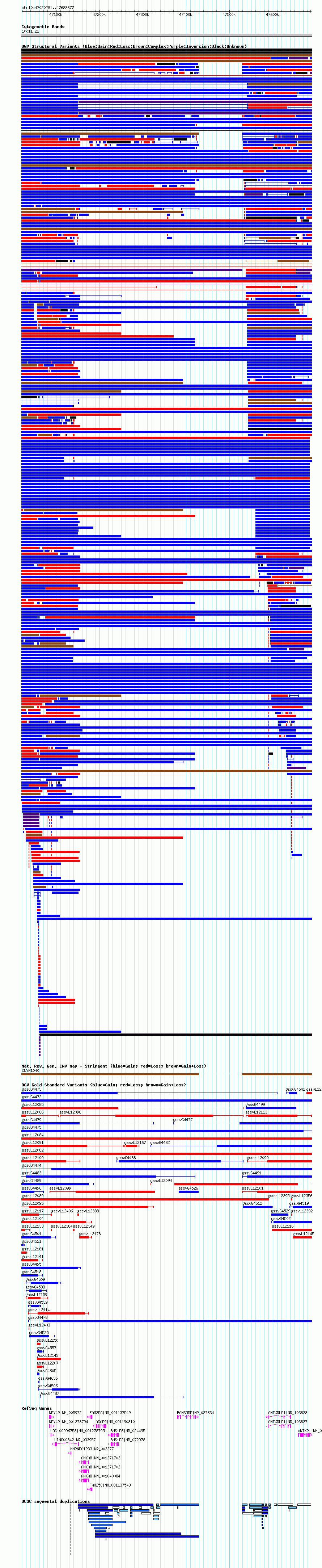 Variant DetailsVariant: esv3576961 | Internal ID | 18705159 | | Landmark | | | Location Information | | | Cytoband | 10q11.22 | | Allele length | | Assembly | Allele length | | hg19 | 668397 |