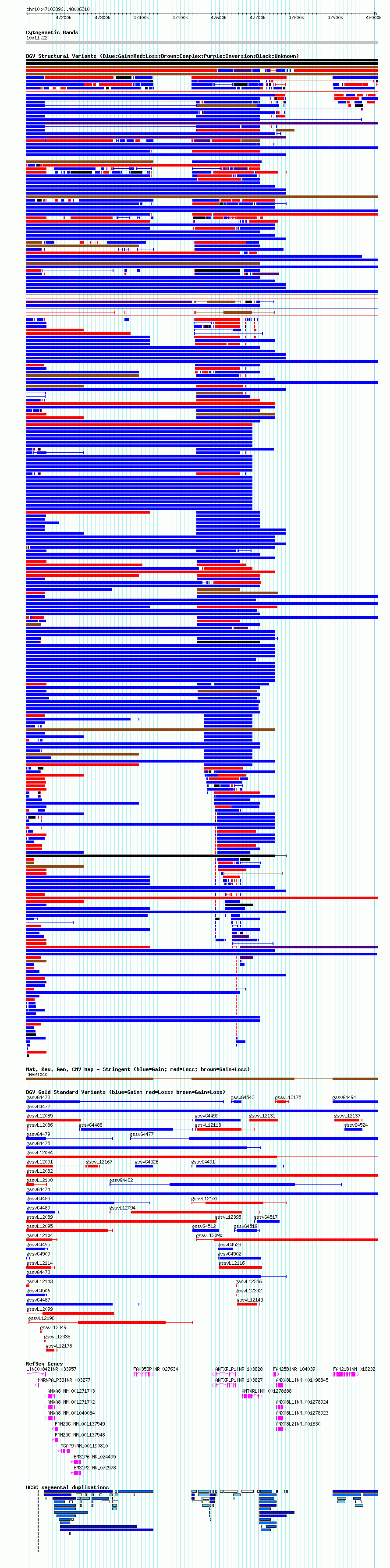 | | Variant Type | CNV gain | | Copy Number | | | Allele State | | | Allele Origin | | | Probe Count | | | Validation Flag | | | Merged Status | M | | Merged Variants | dgv228e212 | | Supporting Variants | essv9793362 | | Samples | 400897MD | | Known Genes | AGAP9, ANTXRL, ANTXRLP1, ANXA8, ANXA8L1, ANXA8L2, BMS1P2, BMS1P6, FAM21B, FAM25B, FAM25C, FAM25G, FAM35DP, HNRNPA1P33, LINC00842 | | Method | SNP array | | Analysis | We used four separate algorithms to detect CNVs; Affymetrix Chromosome Analysis Suite (ChAS), iPattern, Nexus and Partek. Our primary analysis was performed based on ChAS CNV calls, which were then supported using the remaining three algorithms to construct a confidence set of CNVs. For all algorithms, we have used 8 probes and >1kb as a base line cutoff for CNV detection. | | Platform | Affymetrix CytoScan HD 2.7M array | | Comments | | | Reference | Uddin_et_al_2014 | | Pubmed ID | 25503493 | | Accession Number(s) | esv3577127