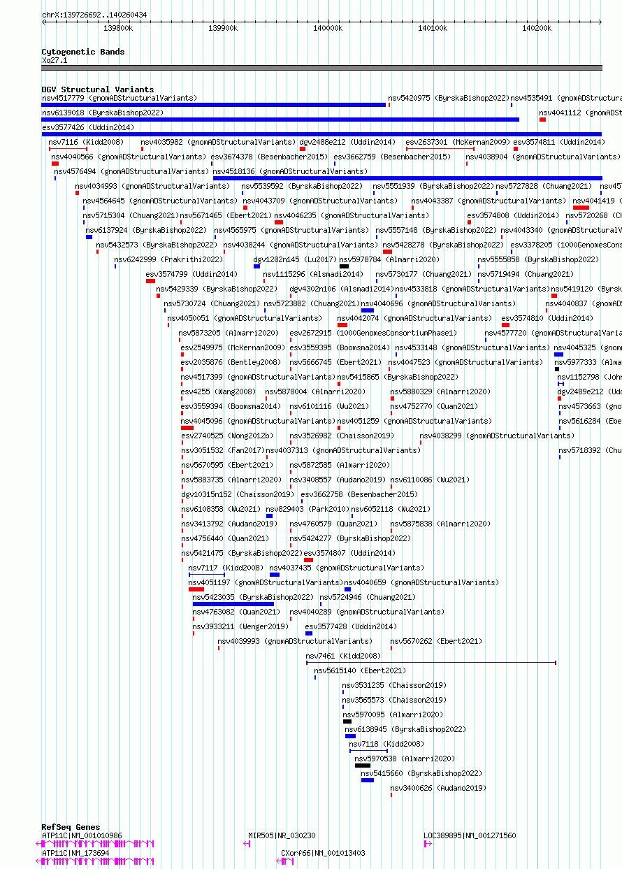 | Known Genes | ATP11C, CXorf66, LOC389895, MIR505 |
