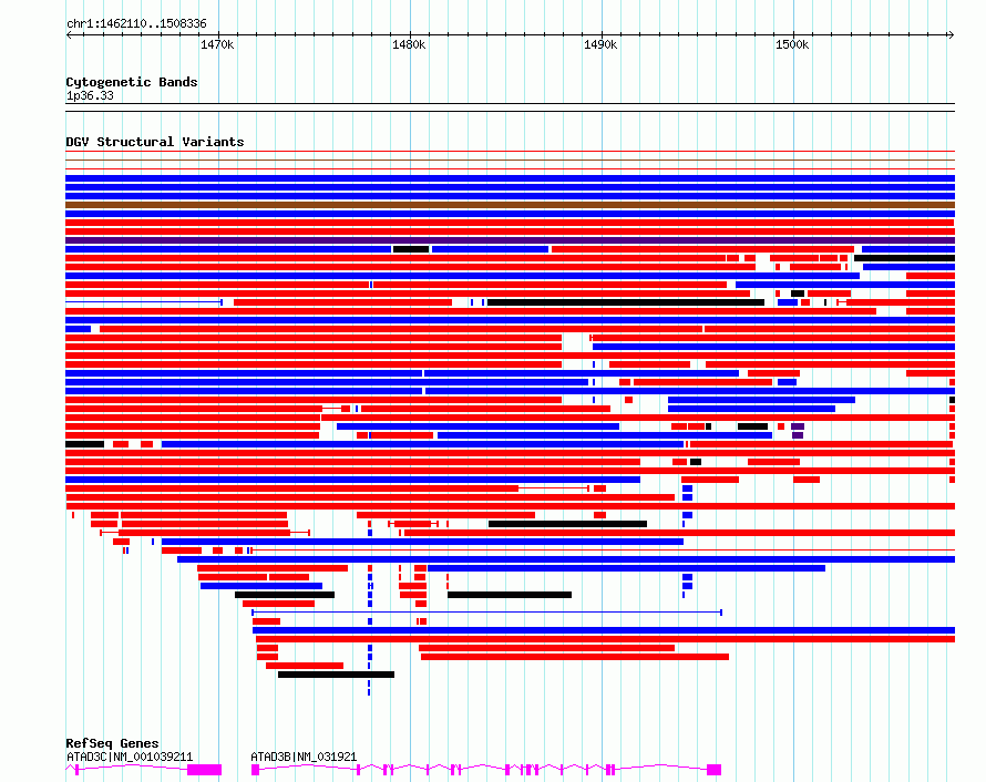 Variant DetailsVariant: esv3577669 | Internal ID | 18705867 | | Landmark | | | Location Information | | | Cytoband | 1p36.33 | | Allele length | | Assembly | Allele length | | hg38 | 46227 | | hg19 | 46227 |