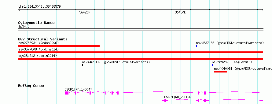 Variant DetailsVariant: esv3577811| Internal ID | 18359323 | | Landmark | | | Location Information | | | Cytoband | 1p34.3 | | Allele length | | Assembly | Allele length | | hg38 | 25537 | | hg19 | 25537 |