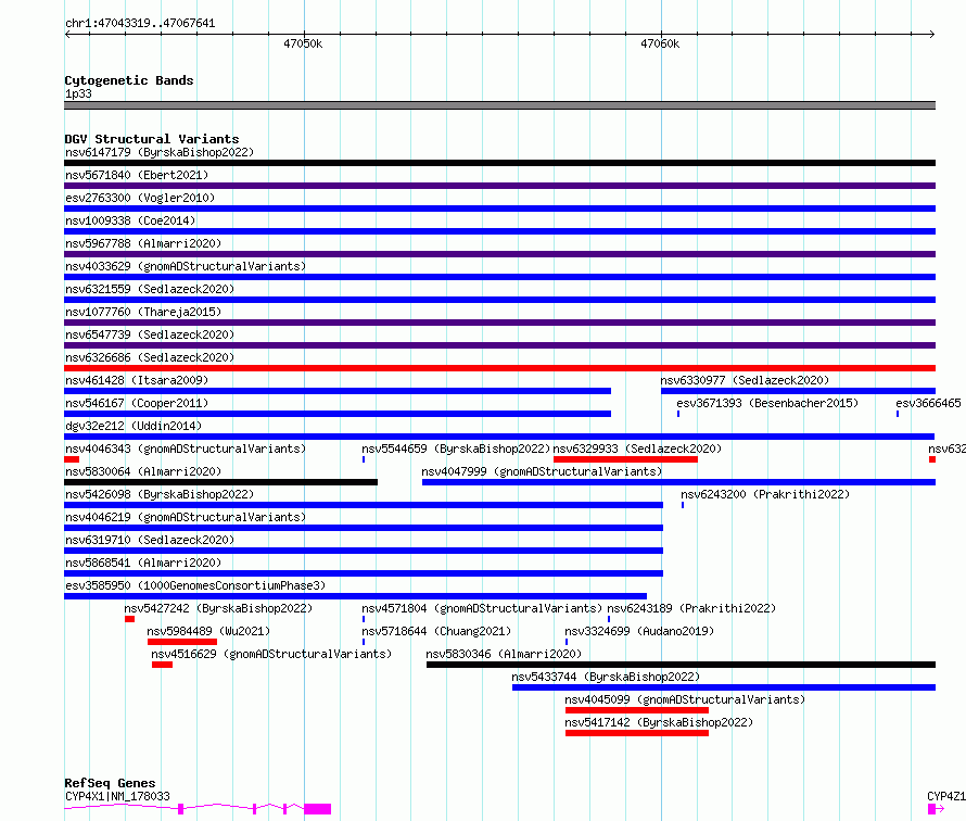 Variant DetailsVariant: esv3577916| Internal ID | 18706114 | | Landmark | | | Location Information | | | Cytoband | 1p33 | | Allele length | | Assembly | Allele length | | hg38 | 24323 | | hg19 | 24323 |