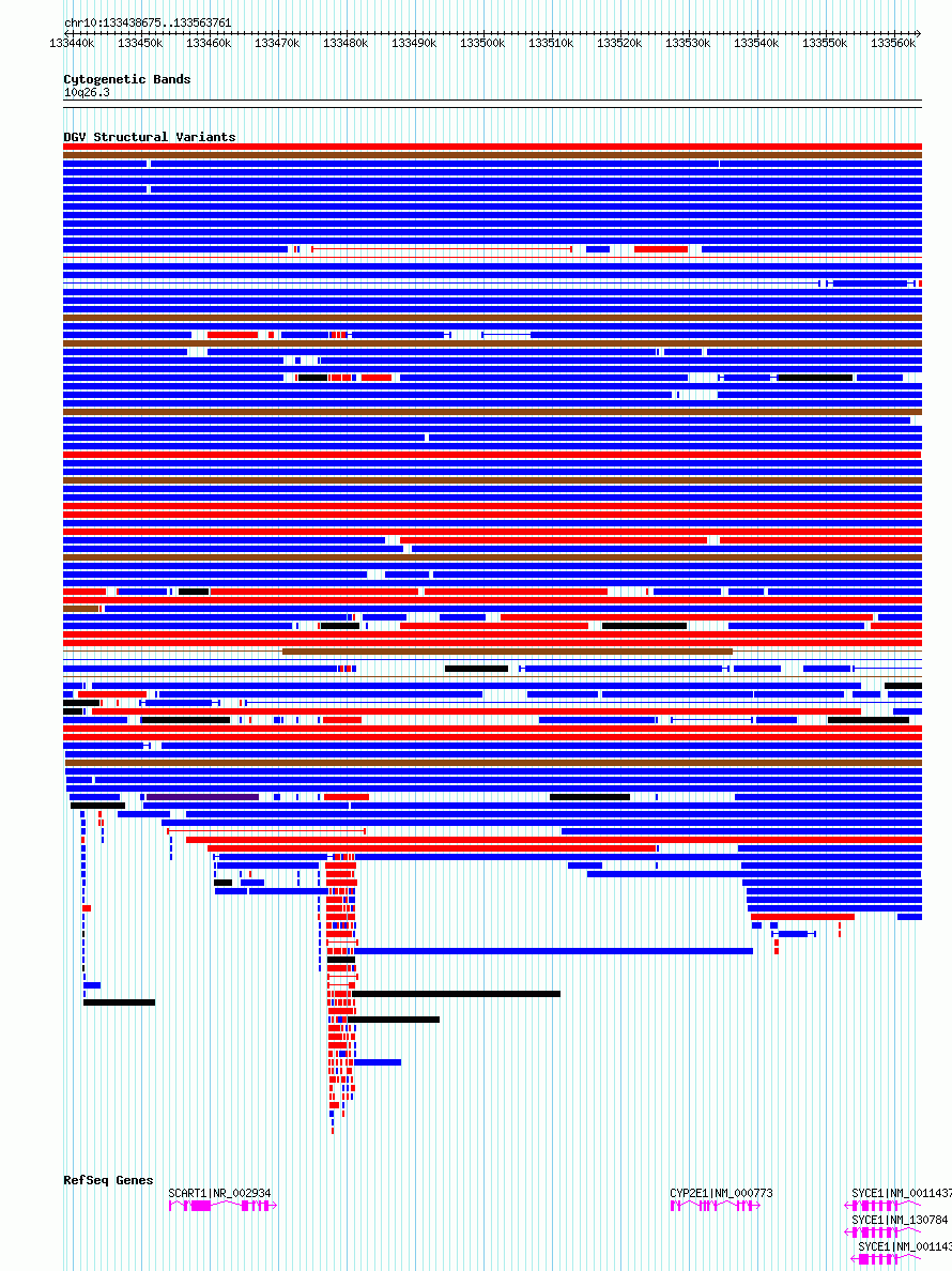 | | Variant Type | CNV gain | | Copy Number | | | Allele State | | | Allele Origin | | | Probe Count | | | Validation Flag | | | Merged Status | M | | Merged Variants | dgv304e212 | | Supporting Variants | essv9795302, essv9795301, essv9795300, essv9795295, essv9795297, essv9795298, essv9795296 | | Samples | 400439IM, 400313DF, 401318AV, 401346FJ, 401365DJ, 400312CR, 401135CS | | Known Genes | CYP2E1, SCART1, SYCE1 | | Method | SNP array | | Analysis | We used four separate algorithms to detect CNVs; Affymetrix Chromosome Analysis Suite (ChAS), iPattern, Nexus and Partek. Our primary analysis was performed based on ChAS CNV calls, which were then supported using the remaining three algorithms to construct a confidence set of CNVs. For all algorithms, we have used 8 probes and >1kb as a base line cutoff for CNV detection. | | Platform | Affymetrix CytoScan HD 2.7M array | | Comments | | | Reference | Uddin_et_al_2014 | | Pubmed ID | 25503493 | | Accession Number(s) | esv3577939