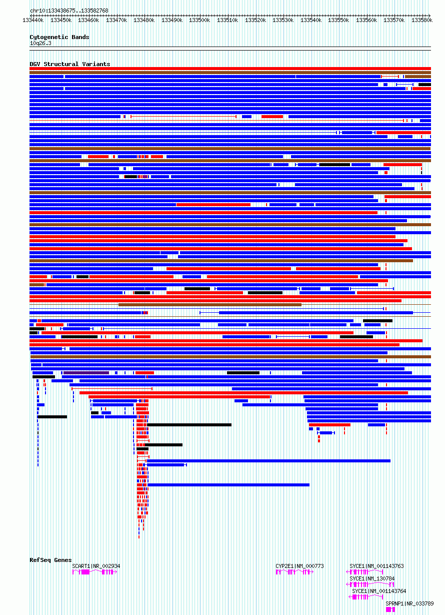 Variant DetailsVariant: esv3577994| Internal ID | 18706192 | | Landmark | | | Location Information | | | Cytoband | 10q26.3 | | Allele length | | Assembly | Allele length | | hg38 | 144094 | | hg19 | 144094 |