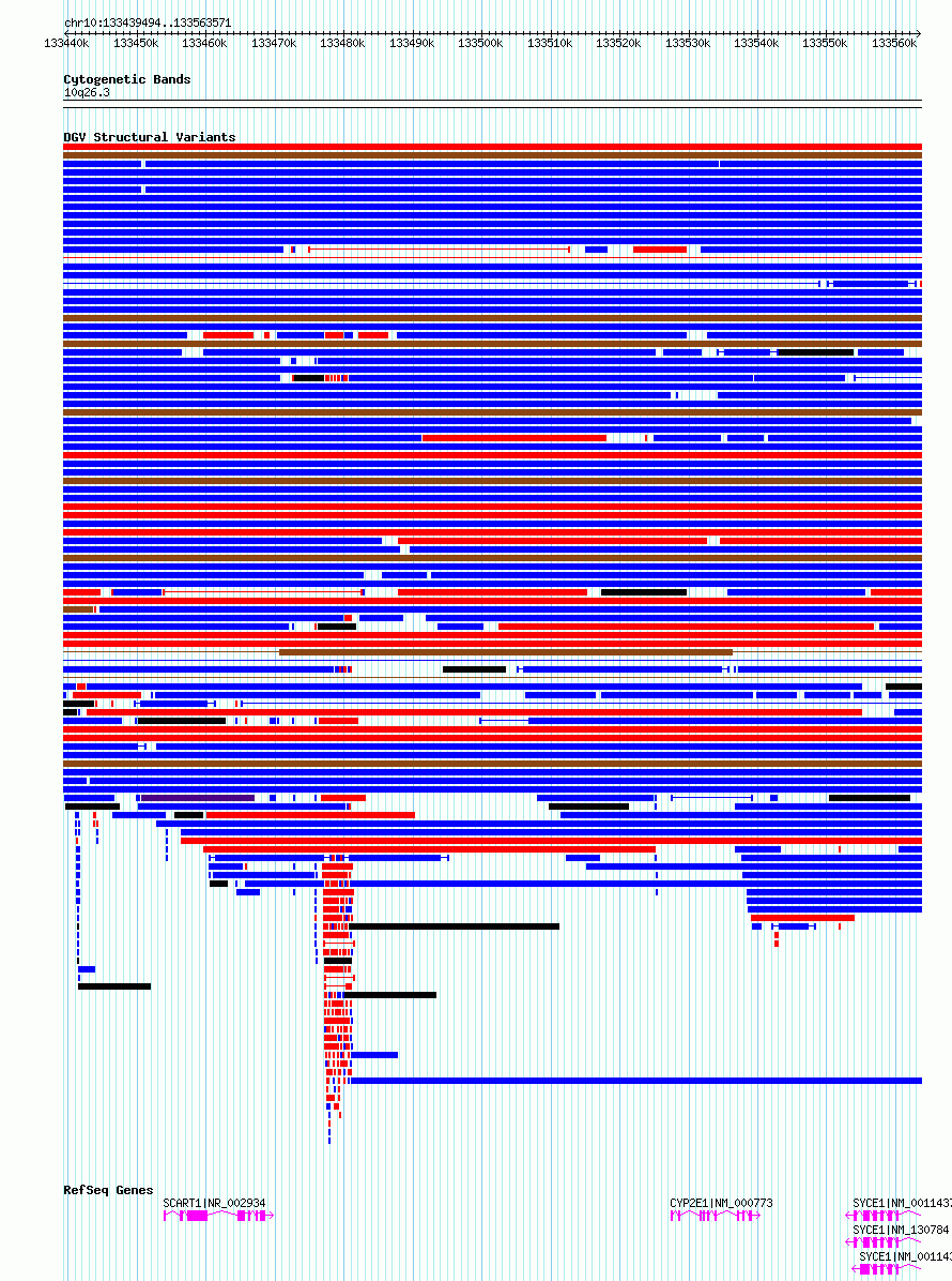 Variant DetailsVariant: esv3578083| Internal ID | 18706281 | | Landmark | | | Location Information | | | Cytoband | 10q26.3 | | Allele length | | Assembly | Allele length | | hg38 | 124078 | | hg19 | 124078 |