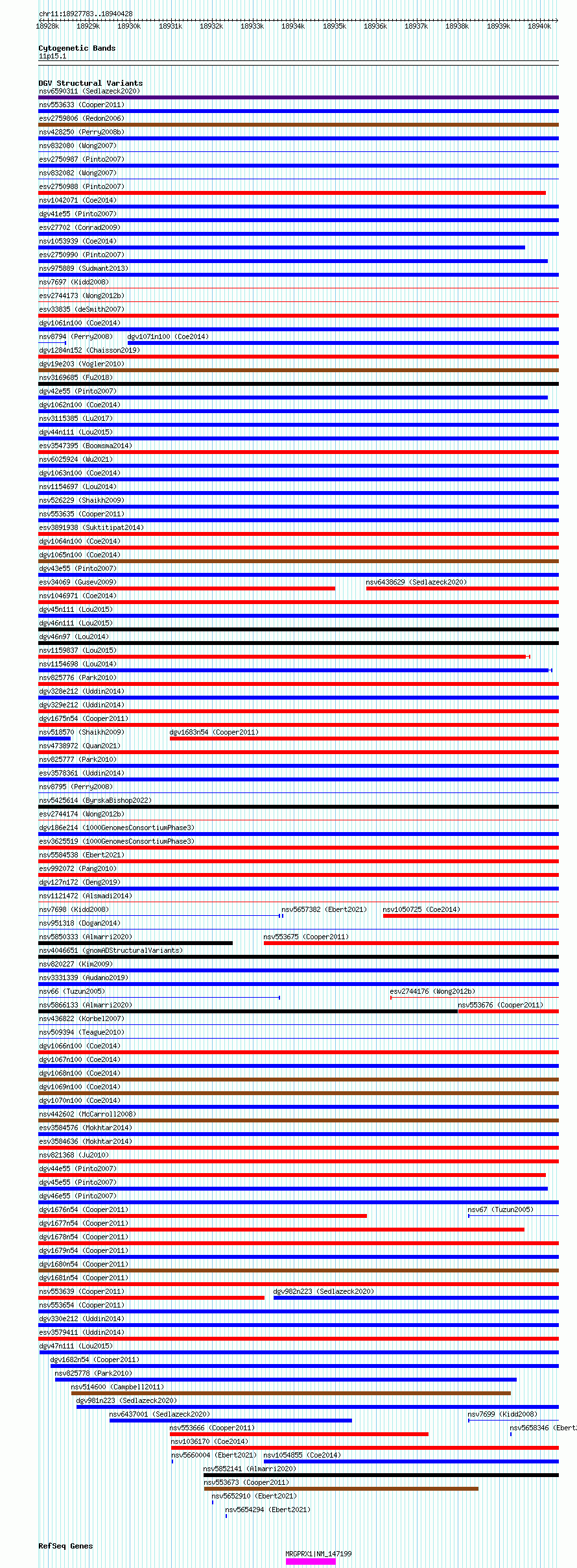 Variant DetailsVariant: esv3578294| Internal ID | 18706492 | | Landmark | | | Location Information | | | Cytoband | 11p15.1 | | Allele length | | Assembly | Allele length | | hg38 | 12646 | | hg19 | 12646 |