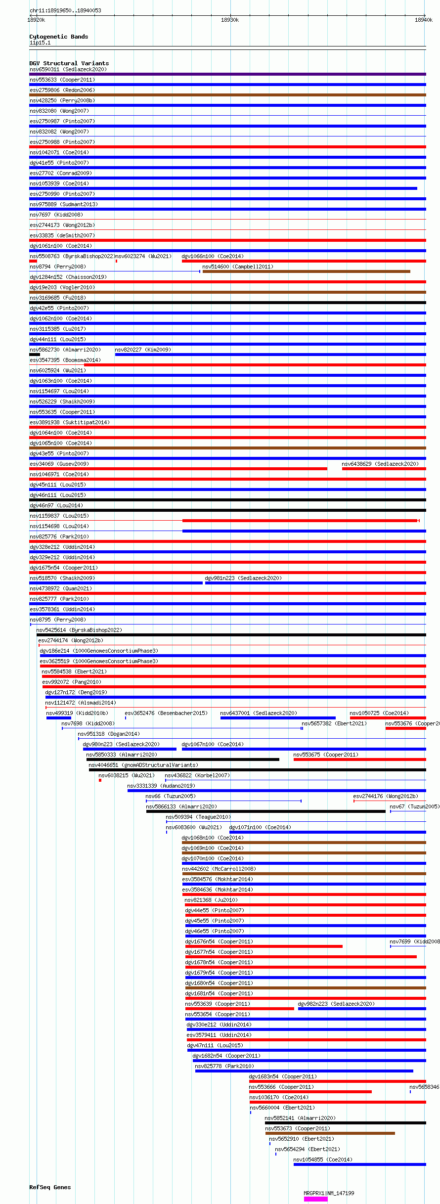 Variant DetailsVariant: esv3578305 | Internal ID | 18706503 | | Landmark | | | Location Information | | | Cytoband | 11p15.1 | | Allele length | | Assembly | Allele length | | hg38 | 20404 | | hg19 | 20404 |