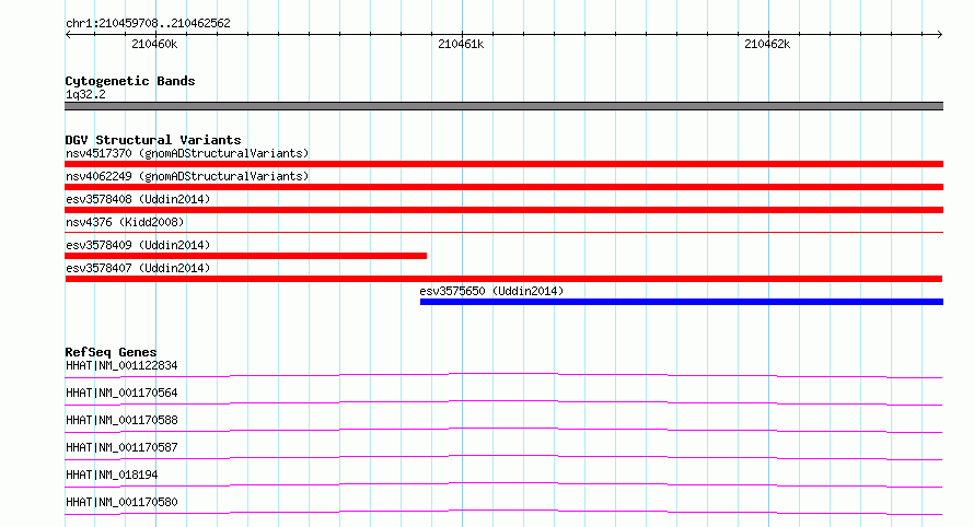 Variant DetailsVariant: esv3578407| Internal ID | 18706605 | | Landmark | | | Location Information | | | Cytoband | 1q32.2 | | Allele length | | Assembly | Allele length | | hg38 | 2855 | | hg19 | 2855 |