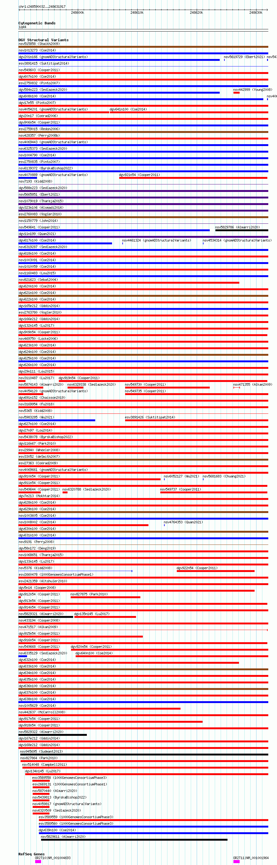 Variant DetailsVariant: esv3578557| Internal ID | 18706755 | | Landmark | | | Location Information | | | Cytoband | 1q44 | | Allele length | | Assembly | Allele length | | hg38 | 41886 | | hg19 | 41886 |