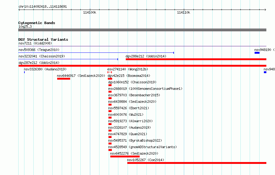 Variant DetailsVariant: esv3579134 | Internal ID | 18707332 | | Landmark | | | Location Information | | | Cytoband | 10q25.3 | | Allele length | | Assembly | Allele length | | hg38 | 26274 | | hg19 | 26274 |