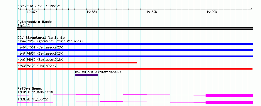 Variant DetailsVariant: esv3580102| Internal ID | 18708300 | | Landmark | | | Location Information | | | Cytoband | 12p13.2 | | Allele length | | Assembly | Allele length | | hg38 | 3918 | | hg19 | 3918 |