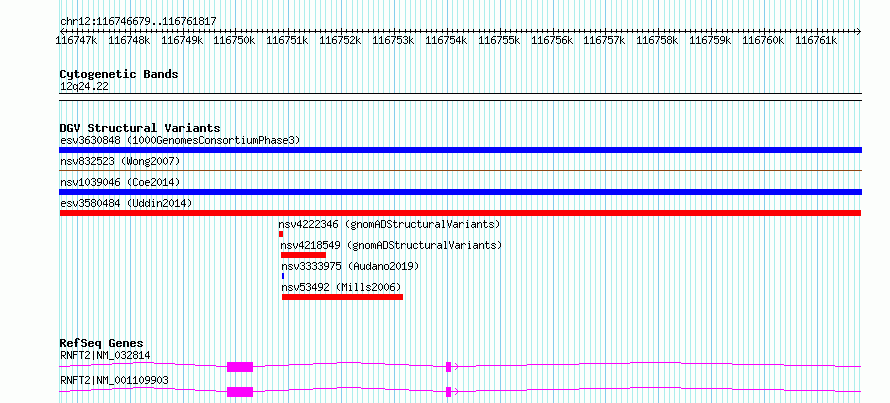 Variant DetailsVariant: esv3580484| Internal ID | 18361996 | | Landmark | | | Location Information | | | Cytoband | 12q24.22 | | Allele length | | Assembly | Allele length | | hg38 | 15139 | | hg19 | 15139 |