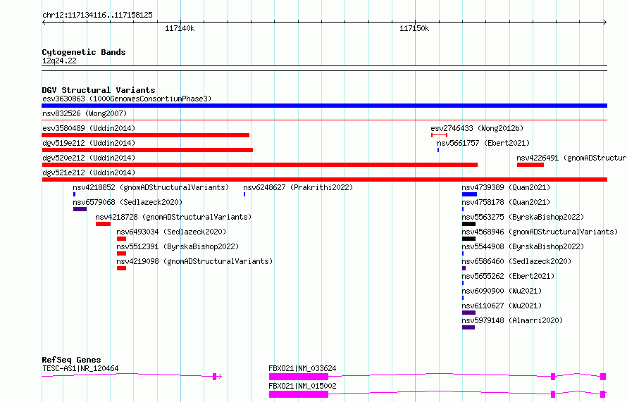 Variant DetailsVariant: esv3580486 | Internal ID | 18708684 | | Landmark | | | Location Information | | | Cytoband | 12q24.22 | | Allele length | | Assembly | Allele length | | hg38 | 24010 | | hg19 | 24010 |