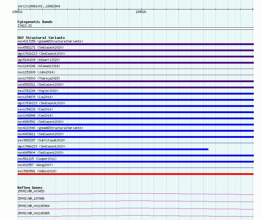 Variant DetailsVariant: esv3580561| Internal ID | 18708759 | | Landmark | | | Location Information | | | Cytoband | 13q12.11 | | Allele length | | Assembly | Allele length | | hg38 | 1904 | | hg19 | 1904 |