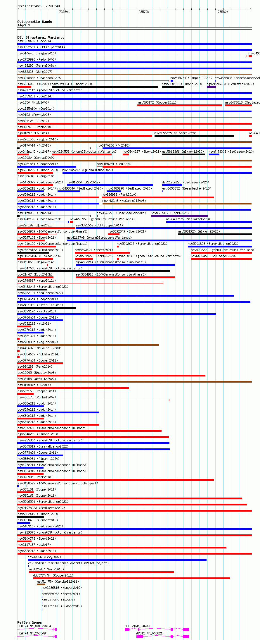 Variant DetailsVariant: esv3581295 | Internal ID | 18709493 | | Landmark | | | Location Information | | | Cytoband | 14q24.3 | | Allele length | | Assembly | Allele length | | hg38 | 29497 | | hg19 | 29497 |