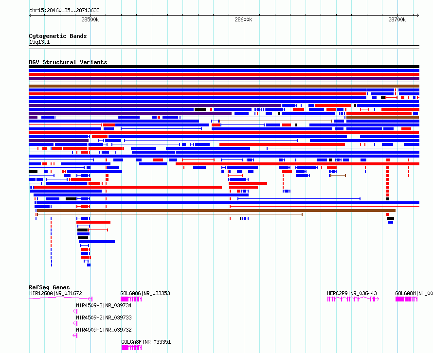 Variant DetailsVariant: esv3581609| Internal ID | 18709807 | | Landmark | | | Location Information | | | Cytoband | 15q13.1 | | Allele length | | Assembly | Allele length | | hg38 | 253499 | | hg19 | 253499 |
