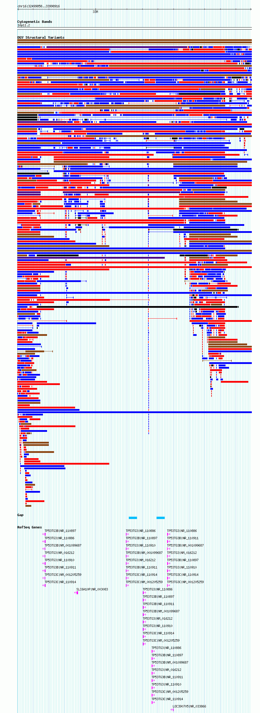 Variant DetailsVariant: esv3582161| Internal ID | 18710359 | | Landmark | | | Location Information | | | Cytoband | 16p11.2 | | Allele length | | Assembly | Allele length | | hg38 | 1499059 | | hg19 | 1290205 |