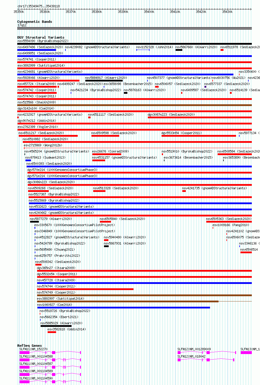 Variant DetailsVariant: esv3582614 | Internal ID | 18710812 | | Landmark | | | Location Information | | | Cytoband | 17q12 | | Allele length | | Assembly | Allele length | | hg38 | 89644 | | hg19 | 89644 |