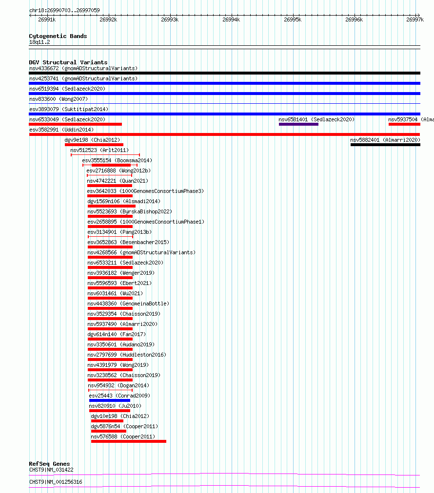 Variant DetailsVariant: esv3582991 | Internal ID | 18711189 | | Landmark | | | Location Information | | | Cytoband | 18q11.2 | | Allele length | | Assembly | Allele length | | hg38 | 6357 | | hg19 | 6357 |