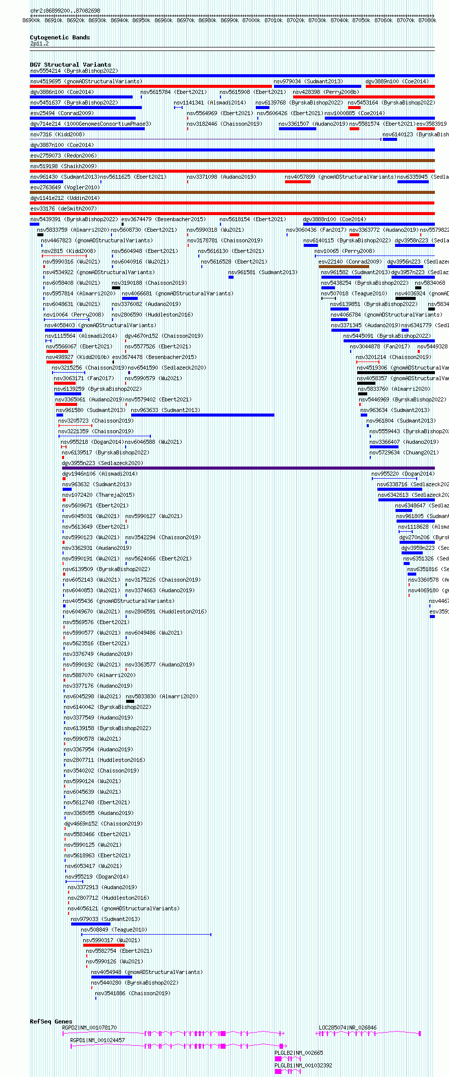 Variant DetailsVariant: esv3583917| Internal ID | 18712115 | | Landmark | | | Location Information | | | Cytoband | 2p11.2 | | Allele length | | Assembly | Allele length | | hg38 | 183499 | | hg19 | 183499 |