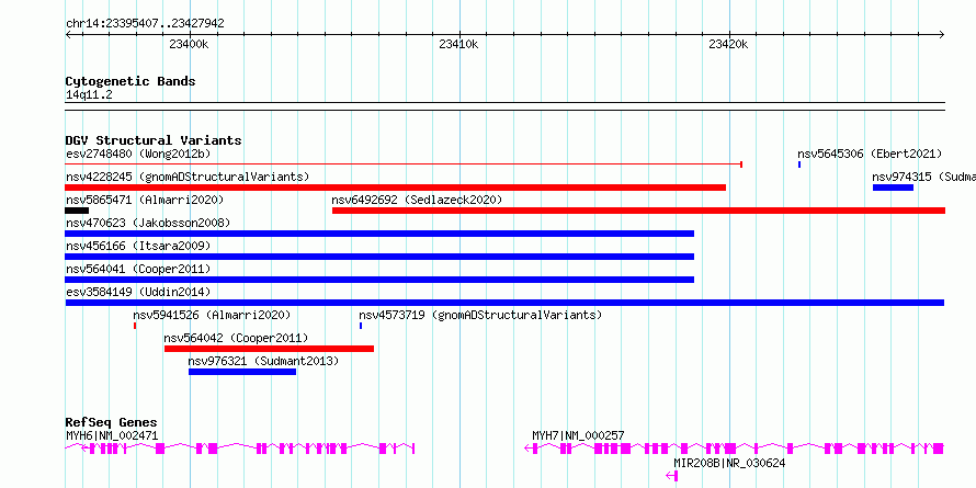 Variant DetailsVariant: esv3584149| Internal ID | 18712347 | | Landmark | | | Location Information | | | Cytoband | 14q11.2 | | Allele length | | Assembly | Allele length | | hg38 | 32536 | | hg19 | 32536 |