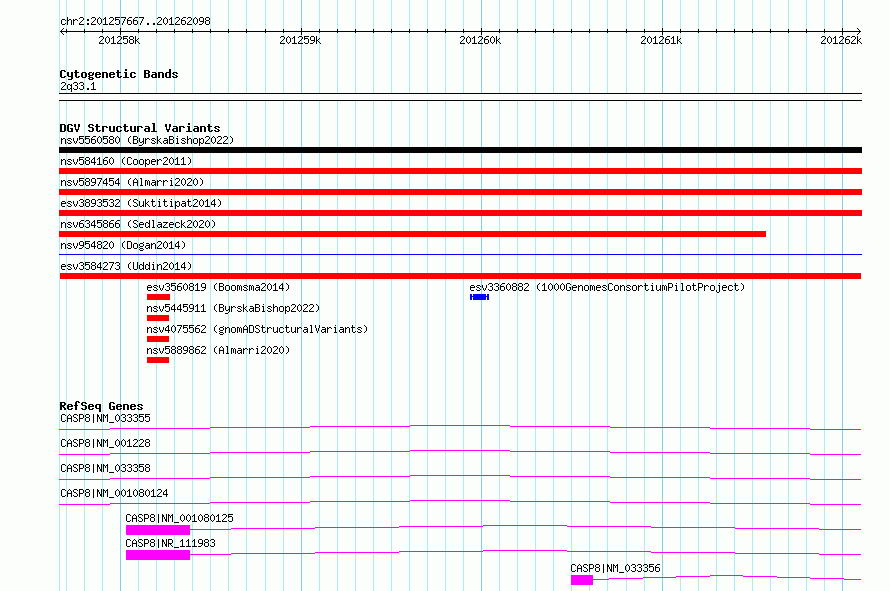 Variant DetailsVariant: esv3584273| Internal ID | 18712471 | | Landmark | | | Location Information | | | Cytoband | 2q33.1 | | Allele length | | Assembly | Allele length | | hg38 | 4432 | | hg19 | 4432 |