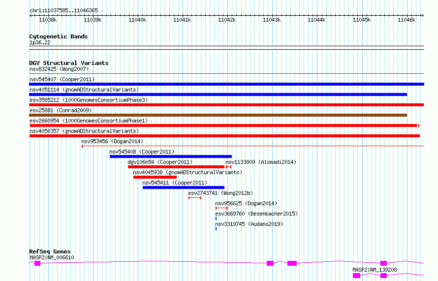 Variant DetailsVariant: esv3585212| Internal ID | 6625531 | | Landmark | | | Location Information | | | Cytoband | 1p36.22 | | Allele length | | Assembly | Allele length | | hg38 | 8781 | | hg19 | 8781 |
