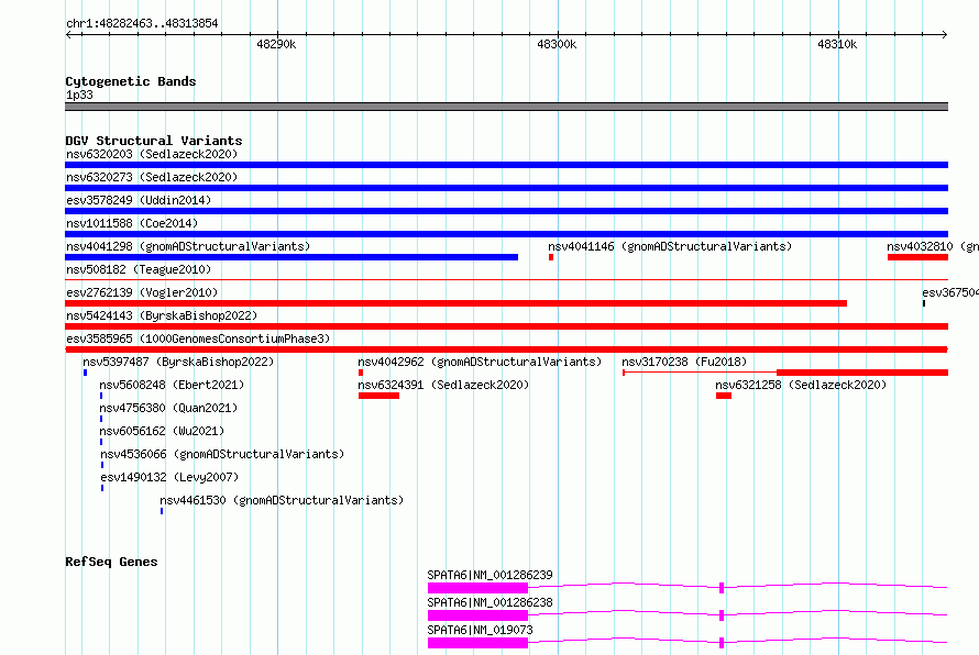 Variant DetailsVariant: esv3585965| Internal ID | 6973484 | | Landmark | | | Location Information | | | Cytoband | 1p33 | | Allele length | | Assembly | Allele length | | hg38 | 31392 | | hg19 | 31392 |