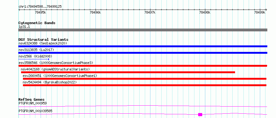 Variant DetailsVariant: esv3586546| Internal ID | 6974064 | | Landmark | | | Location Information | | | Cytoband | 1p31.1 | | Allele length | | Assembly | Allele length | | hg38 | 4528 | | hg19 | 4528 |