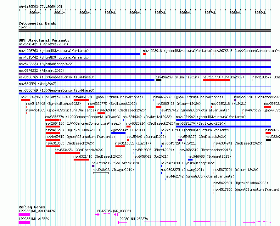 Variant DetailsVariant: esv3586769| Internal ID | 6974287 | | Landmark | | | Location Information | | | Cytoband | 1p22.2 | | Allele length | | Assembly | Allele length | | hg38 | 100575 | | hg19 | 100575 |