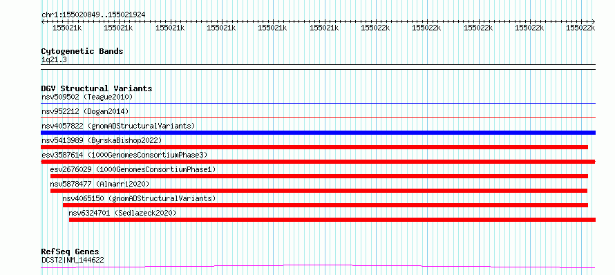 | | Variant Type | CNV loss | | Copy Number | | | Allele State | | | Allele Origin | | | Probe Count | | | Validation Flag | | | Merged Status | M | | Merged Variants | | | Supporting Variants | essv10152130, essv10152138, essv10152128, essv10152139, essv10152136, essv10152141, essv10152144, essv10152143, essv10152146, essv10152126, essv10152147, essv10152131, essv10152140, essv10152148, essv10152134, essv10152145, essv10152127, essv10152142, essv10152132, essv10152133, essv10152135, essv10152129, essv10152137 | | Samples | NA19141, NA19399, HG02798, NA18486, HG03280, NA19443, NA19374, HG02549, NA19023, HG02981, NA19038, NA19372, HG03363, HG01049, NA19461, NA19035, HG02667, NA19834, NA19712, HG03097, HG02053, NA19185, HG03303 | | Known Genes | DCST2 | | Method | Sequencing | | Analysis | | | Platform | Multiple platforms | | Comments | | | Reference | 1000_Genomes_Consortium_Phase_3 | | Pubmed ID | 21293372 | | Accession Number(s) | esv3587614