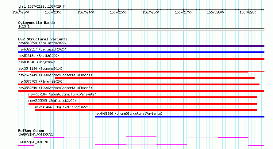 Variant DetailsVariant: esv3587640| Internal ID | 6975062 | | Landmark | | | Location Information | | | Cytoband | 1q23.1 | | Allele length | | Assembly | Allele length | | hg38 | 756 | | hg19 | 756 |