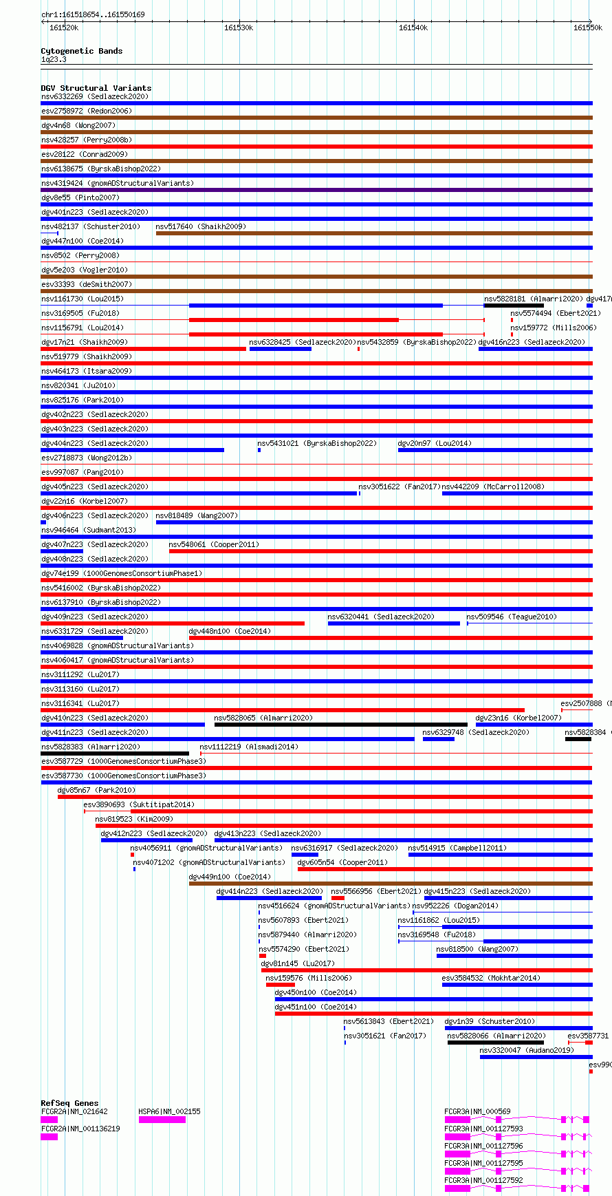 Variant DetailsVariant: esv3587729 | Internal ID | 6975152 | | Landmark | | | Location Information | | | Cytoband | 1q23.3 | | Allele length | | Assembly | Allele length | | hg38 | 31516 | | hg19 | 31516 |
