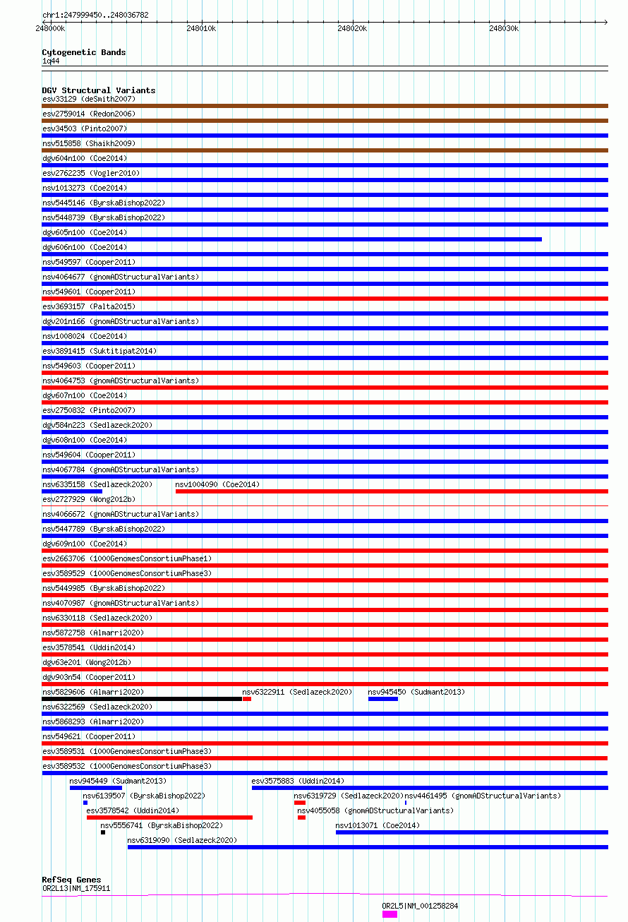 Variant DetailsVariant: esv3589532| Internal ID | 6976860 | | Landmark | | | Location Information | | | Cytoband | 1q44 | | Allele length | | Assembly | Allele length | | hg38 | 37333 | | hg19 | 37333 |