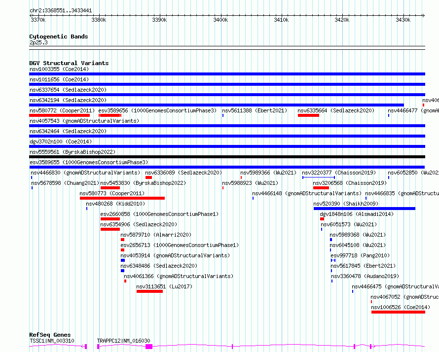 Variant DetailsVariant: esv3589655| Internal ID | 6976984 | | Landmark | | | Location Information | | | Cytoband | 2p25.3 | | Allele length | | Assembly | Allele length | | hg38 | 64891 | | hg19 | 64891 |