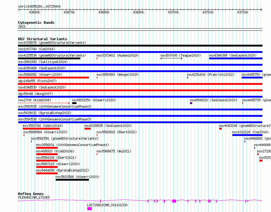 Variant DetailsVariant: esv3590536| Internal ID | 6977865 | | Landmark | | | Location Information | | | Cytoband | 2p21 | | Allele length | | Assembly | Allele length | | hg38 | 70125 | | hg19 | 70125 |