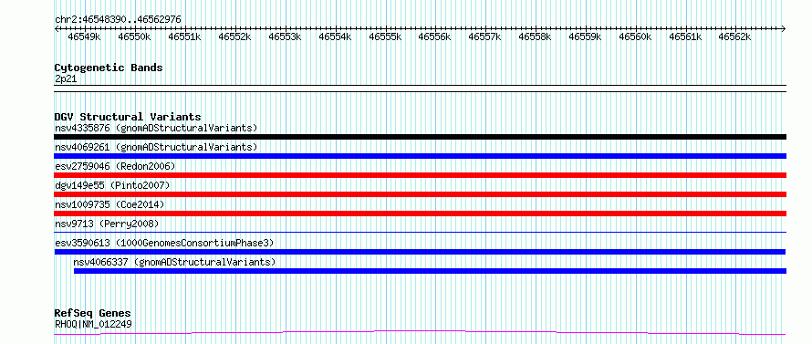 Variant DetailsVariant: esv3590613| Internal ID | 6630899 | | Landmark | | | Location Information | | | Cytoband | 2p21 | | Allele length | | Assembly | Allele length | | hg38 | 14587 | | hg19 | 14587 |