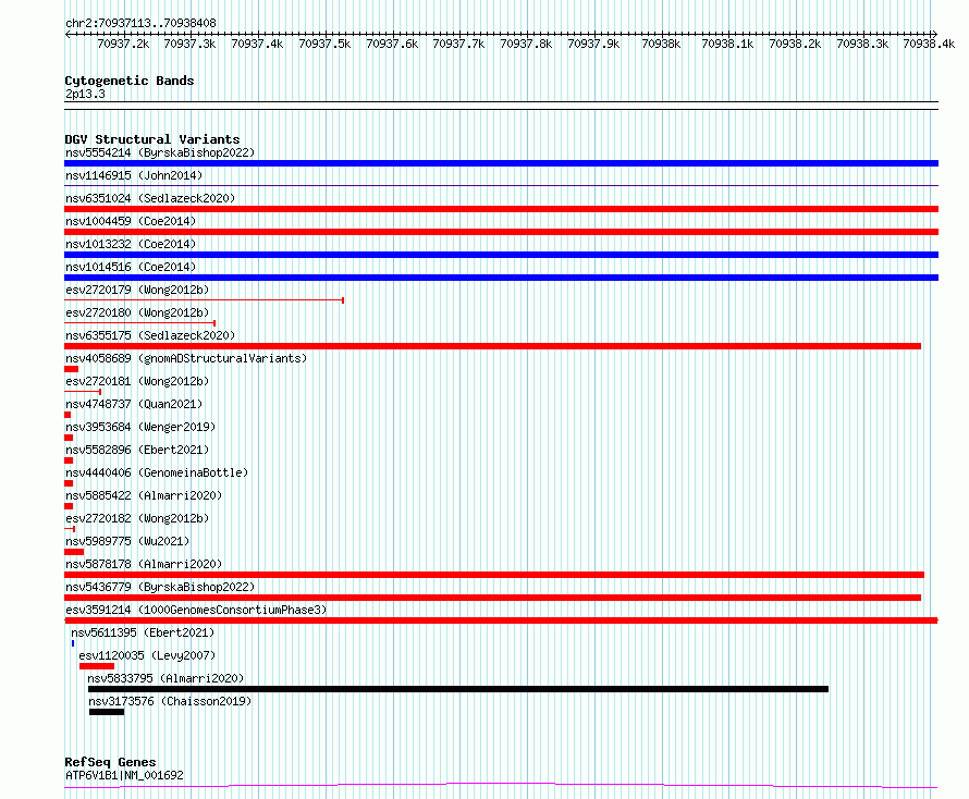Variant DetailsVariant: esv3591214| Internal ID | 6978542 | | Landmark | | | Location Information | | | Cytoband | 2p13.3 | | Allele length | | Assembly | Allele length | | hg38 | 1296 | | hg19 | 1296 |
