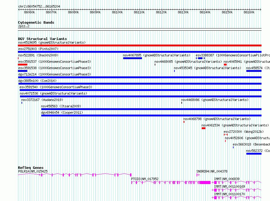 Variant DetailsVariant: esv3591539| Internal ID | 6631823 | | Landmark | | | Location Information | | | Cytoband | 2p11.2 | | Allele length | | Assembly | Allele length | | hg38 | 110453 | | hg19 | 110453 |