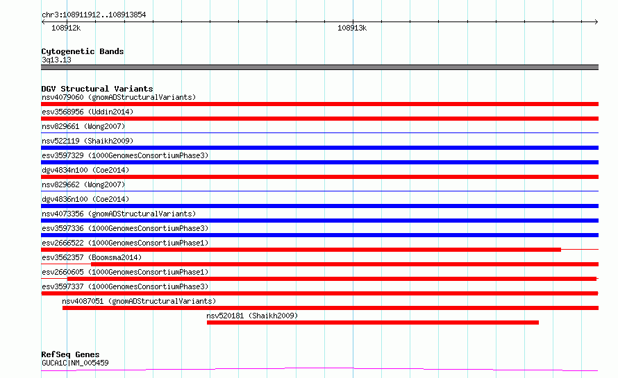 | | Variant Type | CNV loss | | Copy Number | | | Allele State | | | Allele Origin | | | Probe Count | | | Validation Flag | | | Merged Status | M | | Merged Variants | | | Supporting Variants | essv11097390, essv11097392, essv11097389, essv11097398, essv11097394, essv11097388, essv11097402, essv11097395, essv11097400, essv11097397, essv11097387, essv11097401, essv11097386, essv11097399, essv11097391, essv11097393, essv11097396 | | Samples | HG00364, HG01676, NA20317, HG03342, HG01673, NA20318, NA19921, NA11831, NA18934, NA19184, HG02221, HG01770, HG01617, NA19312, NA20585, HG01509, NA21091 | | Known Genes | GUCA1C | | Method | Sequencing | | Analysis | | | Platform | Multiple platforms | | Comments | | | Reference | 1000_Genomes_Consortium_Phase_3 | | Pubmed ID | 21293372 | | Accession Number(s) | esv3597337