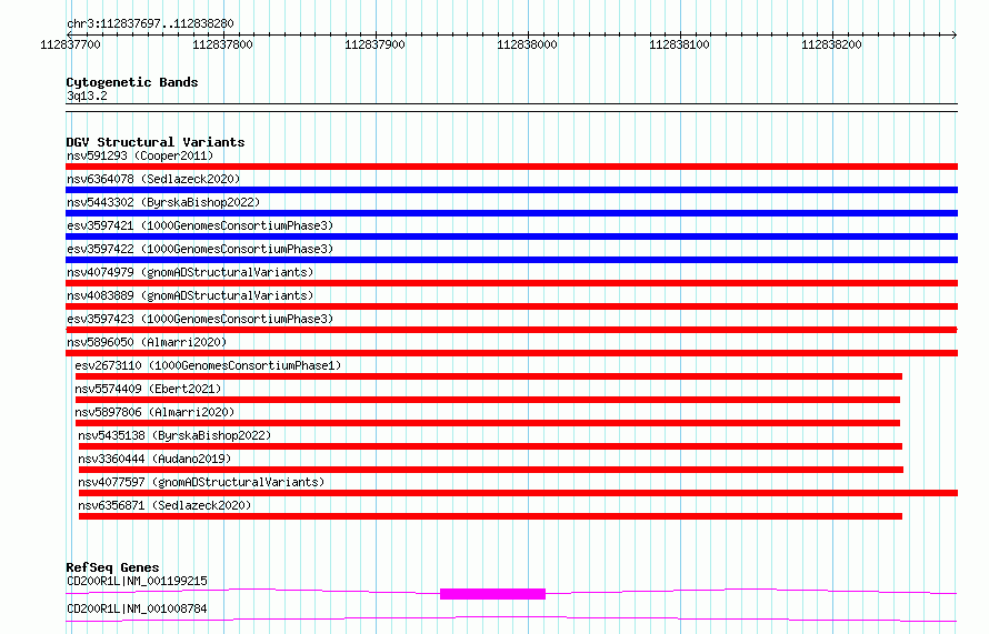 Variant DetailsVariant: esv3597423 | Internal ID | 6972269 | | Landmark | | | Location Information | | | Cytoband | 3q13.2 | | Allele length | | Assembly | Allele length | | hg38 | 584 | | hg19 | 584 |