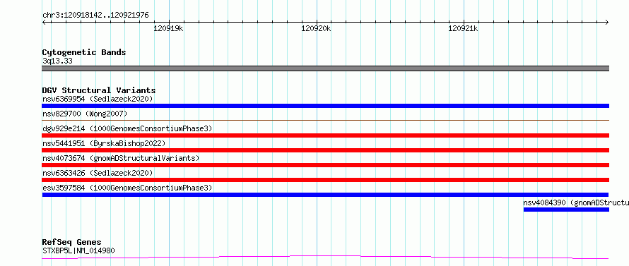 Variant DetailsVariant: esv3597584| Internal ID | 6984723 | | Landmark | | | Location Information | | | Cytoband | 3q13.33 | | Allele length | | Assembly | Allele length | | hg38 | 3835 | | hg19 | 3835 |