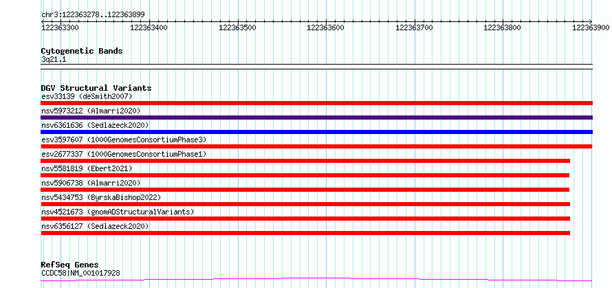 Variant DetailsVariant: esv3597607 | Internal ID | 6984746 | | Landmark | | | Location Information | | | Cytoband | 3q21.1 | | Allele length | | Assembly | Allele length | | hg38 | 622 | | hg19 | 622 |