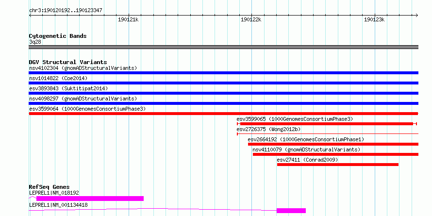 | Variant Type | CNV loss | Copy Number | | Allele State | | Allele Origin | | Probe Count | | Validation Flag | | Merged Status | M | Merged Variants | | Supporting Variants | essv11268545, essv11268559, essv11268556, essv11268554, essv11268549, essv11268552, essv11268561, essv11268550, essv11268562, essv11268548, essv11268553, essv11268558, essv11268557, essv11268555, essv11268547, essv11268546, essv11268551, essv11268560 | Samples | HG03121, HG03297, NA18519, NA19916, HG03209, NA19172, HG02882, HG02716, HG03132, HG02953, HG02307, NA19461, HG03388, NA19093, HG01085, NA19185, HG02051, NA19431 | Known Genes | LEPREL1 | Method | Sequencing | Analysis | | Platform | Multiple platforms | Comments | | Reference | 1000_Genomes_Consortium_Phase_3 | Pubmed ID | 21293372 | Accession Number(s) | esv3599064