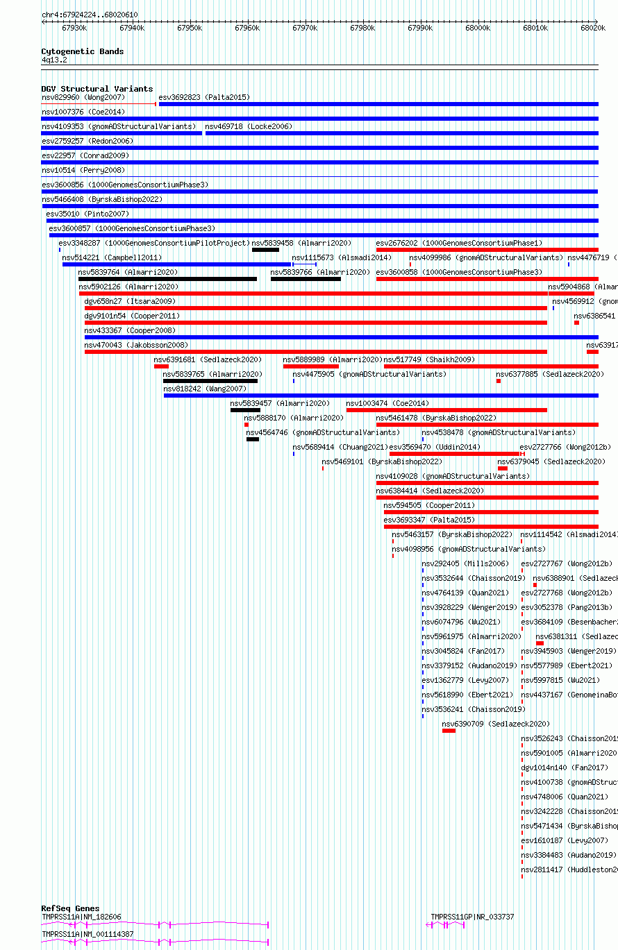 Variant DetailsVariant: esv3600856| Internal ID | 6987895 | | Landmark | | | Location Information | | | Cytoband | 4q13.2 | | Allele length | | Assembly | Allele length | | hg38 | 96387 | | hg19 | 96387 |