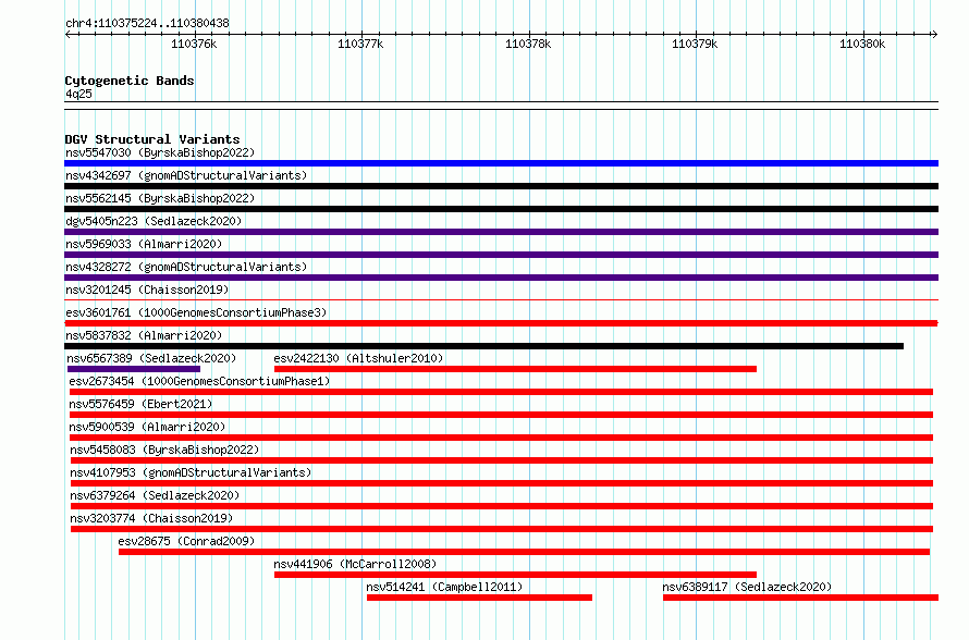 Variant DetailsVariant: esv3601761 | Internal ID | 6988797 | | Landmark | | | Location Information | | | Cytoband | 4q25 | | Allele length | | Assembly | Allele length | | hg38 | 5215 | | hg19 | 5215 |