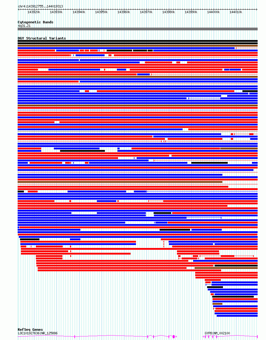 | | Variant Type | CNV loss | | Copy Number | | | Allele State | | | Allele Origin | | | Probe Count | | | Validation Flag | | | Merged Status | M | | Merged Variants | | | Supporting Variants | essv11637732, essv11637721, essv11637747, essv11637719, essv11637715, essv11637731, essv11637766, essv11637730, essv11637718, essv11637711, essv11637740, essv11637752, essv11637709, essv11637725, essv11637714, essv11637716, essv11637763, essv11637706, essv11637727, essv11637760, essv11637746, essv11637710, essv11637738, essv11637753, essv11637751, essv11637756, essv11637707, essv11637757, essv11637737, essv11637734, essv11637728, essv11637765, essv11637758, essv11637741, essv11637726, essv11637729, essv11637724, essv11637762, essv11637748, essv11637761, essv11637717, essv11637733, essv11637720, essv11637713, essv11637749, essv11637750, essv11637739, essv11637767, essv11637742, essv11637745, essv11637708, essv11637723, essv11637754, essv11637743, essv11637764, essv11637712, essv11637722, essv11637735, essv11637755, essv11637736, essv11637759, essv11637744 | | Samples | NA19394, HG01986, HG02574, HG02339, HG02973, HG03057, NA19020, NA18917, HG02012, HG03295, HG03139, NA19443, HG03478, HG03572, NA18519, HG03452, HG02840, HG02054, HG01242, HG03520, NA19383, HG02315, NA19235, NA19207, NA20412, NA19901, HG02545, HG03583, NA19027, HG03270, HG03169, HG02716, HG04039, HG03547, HG02953, HG03575, HG01948, NA18499, NA19113, HG01890, NA18523, NA19436, NA20351, HG02982, HG03433, HG02464, HG02814, HG03108, HG03084, NA19248, HG02970, NA19223, HG02107, NA19093, HG02676, NA19102, HG01269, NA19121, HG02947, HG03072, HG02805, HG03439 | | Known Genes | GYPB | | Method | Sequencing | | Analysis | | | Platform | Multiple platforms | | Comments | | | Reference | 1000_Genomes_Consortium_Phase_3 | | Pubmed ID | 21293372 | | Accession Number(s) | esv3602521