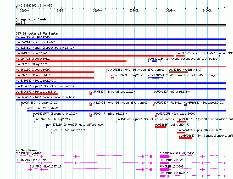 | Known Genes | AMACR, C1QTNF3-AMACR, SLC45A2 |
