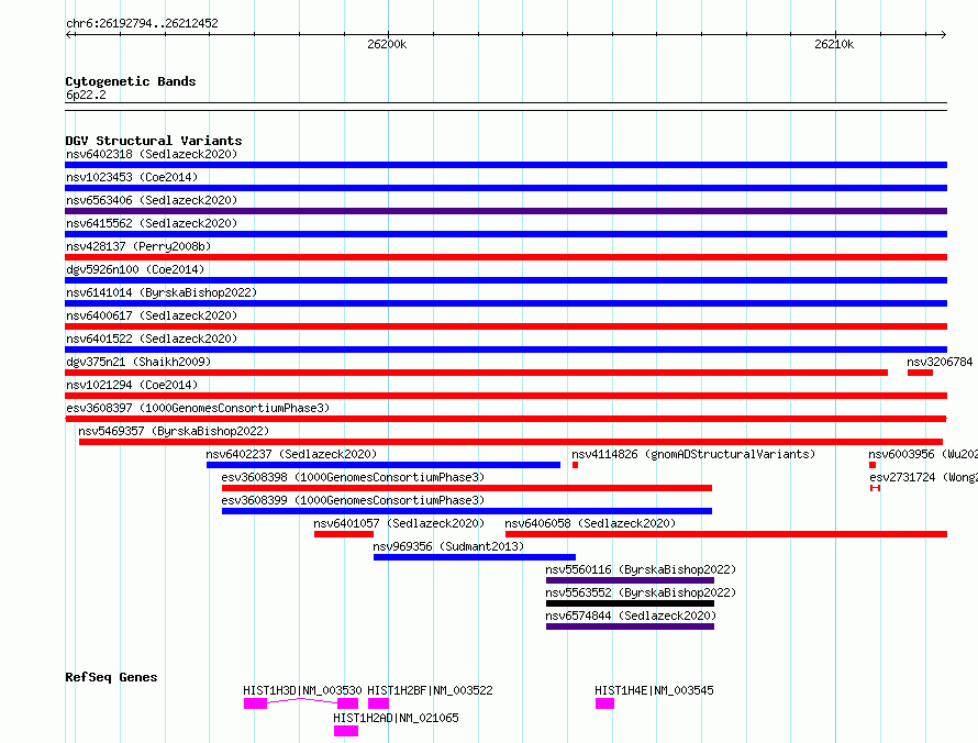 | Known Genes | HIST1H2AD, HIST1H2BF, HIST1H3D, HIST1H4E |